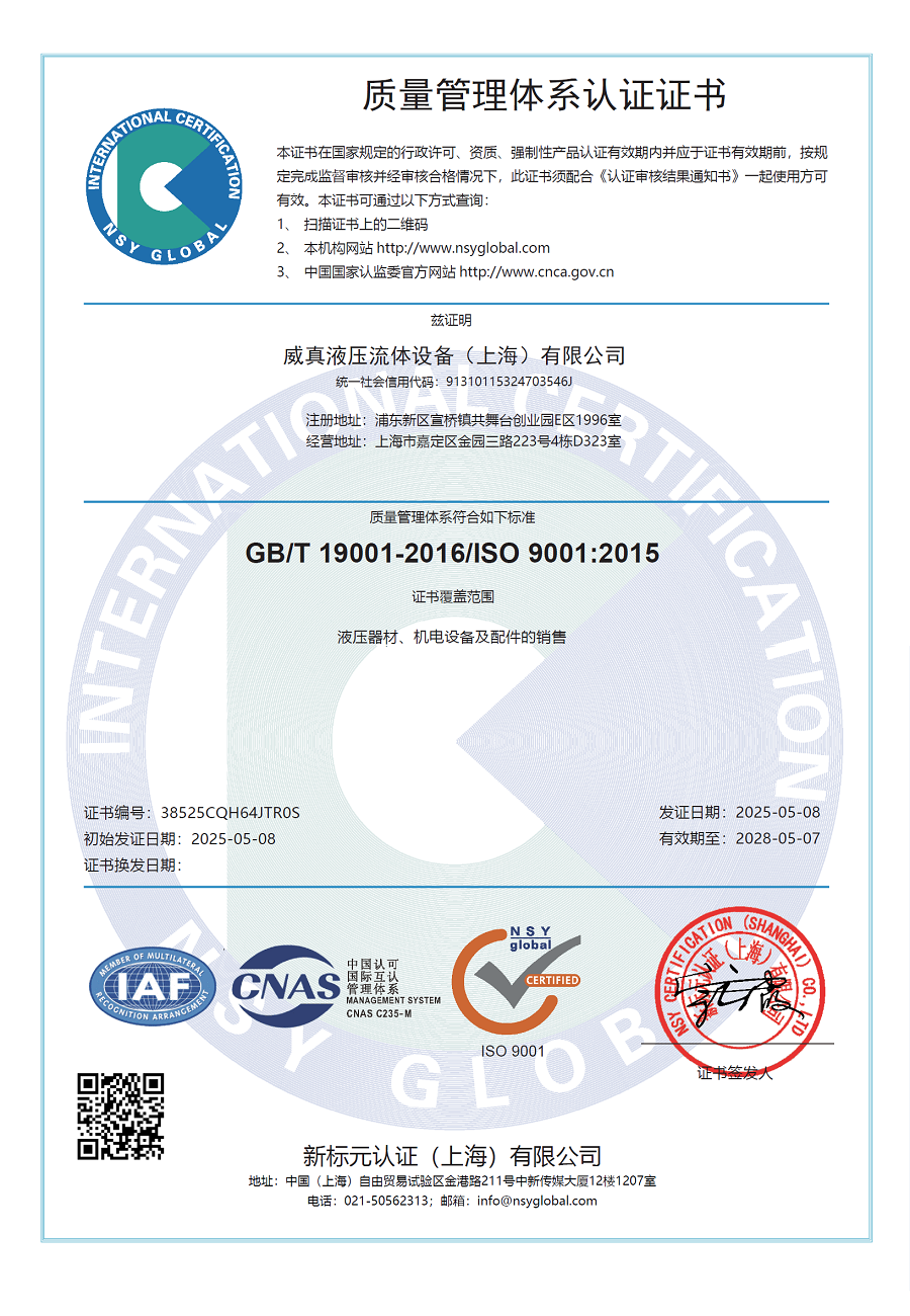 威真液壓流體設(shè)備(上海)有限公司是專業(yè)生產(chǎn)和經(jīng)營各種液壓膠管總成、液壓接頭、不銹鋼流體連接件、精密鋼管、球閥、法蘭及其它液壓附件的企業(yè),公司自創(chuàng)立以來一直致力為客戶提供完整的液壓、流體解決方案、努力打造“華東最大流體連接件超市”;始終堅持“客戶至上、技術(shù)爭先、求真務(wù)實、揚我國威”的企業(yè)宗旨。同時我們還是RYCO(澳大利亞萊科)品牌液壓軟管的授權(quán)代理商。我公司總部位于國際金融中心—上海,多年的液壓管件研發(fā)與生產(chǎn)經(jīng)驗、專業(yè)的技術(shù)與服務(wù)隊伍為威真液壓打造行業(yè)一流企業(yè)提供了有力保障。目前我們已經(jīng)通過ISO 9001:2015/ GB/T 19001-2016 質(zhì)量體系認證,而我們的產(chǎn)品全部按照DIN2353、ISO8434、SAEJ514等國際質(zhì)量體系標(biāo)準(zhǔn)進行設(shè)計、生產(chǎn)、檢測。我們重視產(chǎn)品質(zhì)量,所以威真液壓今天已經(jīng)成為業(yè)界成長飛快的公司,盡管如此,我們?nèi)砸砸涣鞯钠焚|(zhì)和良好的交貨能力為客戶提供細致入微的服務(wù)。